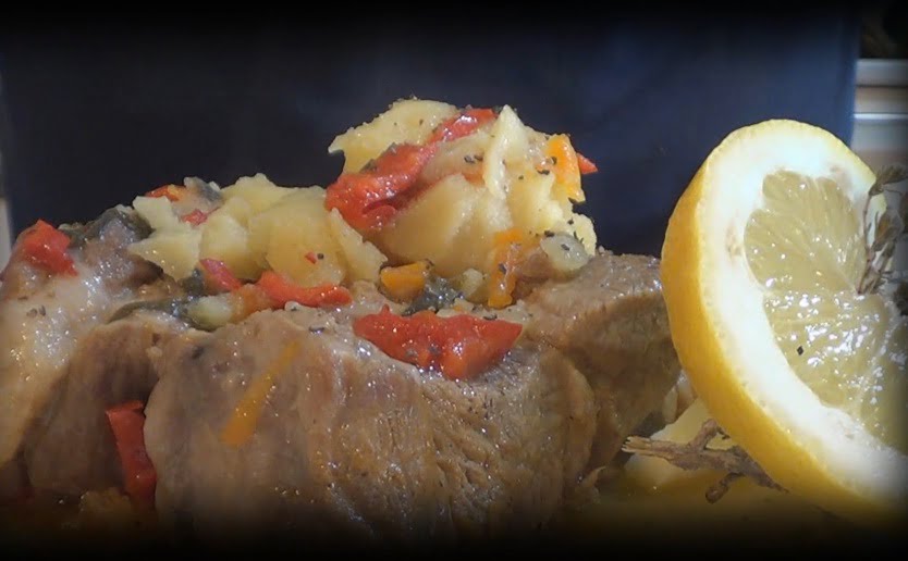 Υλικά 1. Κιλό χοιρινό 1. κιλό πατάτες 1.Κρεμμύδι μεγάλο 1. Καρότο μεγάλο 1. Πιπεριά Φλωρίνης 150γρ. Σελινόριζα 50γρ. Σέλινο 80γρ. Ελαιόλαδο 500γρ. Νερό Αλάτι Πιπέρι Θυμάρι λίγο Εκτέλεση Πλένουμε το κρέας και το βάζουμε στο σουρωτήρι να στράγγιση. Σε μια κατσαρόλα βάζουμε το ελαιόλαδο και το κρεμμύδι να σοκαριστεί για