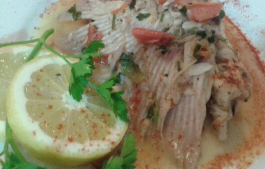 Υλικά : 1 κιλό βάτο 1 μεγάλη ντομάτα αλάτι πιπέρι θυμάρι μαϊντανό 1 κουτ. σούπας μουστάρδα 0