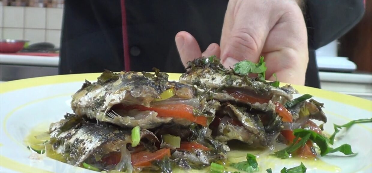 Υλικά 3. Πιπεριές 1 ½ . Σαρδέλες 1. Κρεμμύδι μεγάλο 2. Ντομάτες μέτριες ¼. Ματσάκι μαϊντανό 150 ml. Ελαιόλαδο Αλάτι. Πιπέρι. Ρίγανη. Εκτέλεση Καθαρίζουμε και πλένουμε τις σαρδέλες Αφαιρούμε το κόκαλο που έχουν στην μέση Πλένουμε και κόβουμε τις ντομάτες σε λεπτές φέτες Το ίδιο κάνουμε και με τις πιπεριές