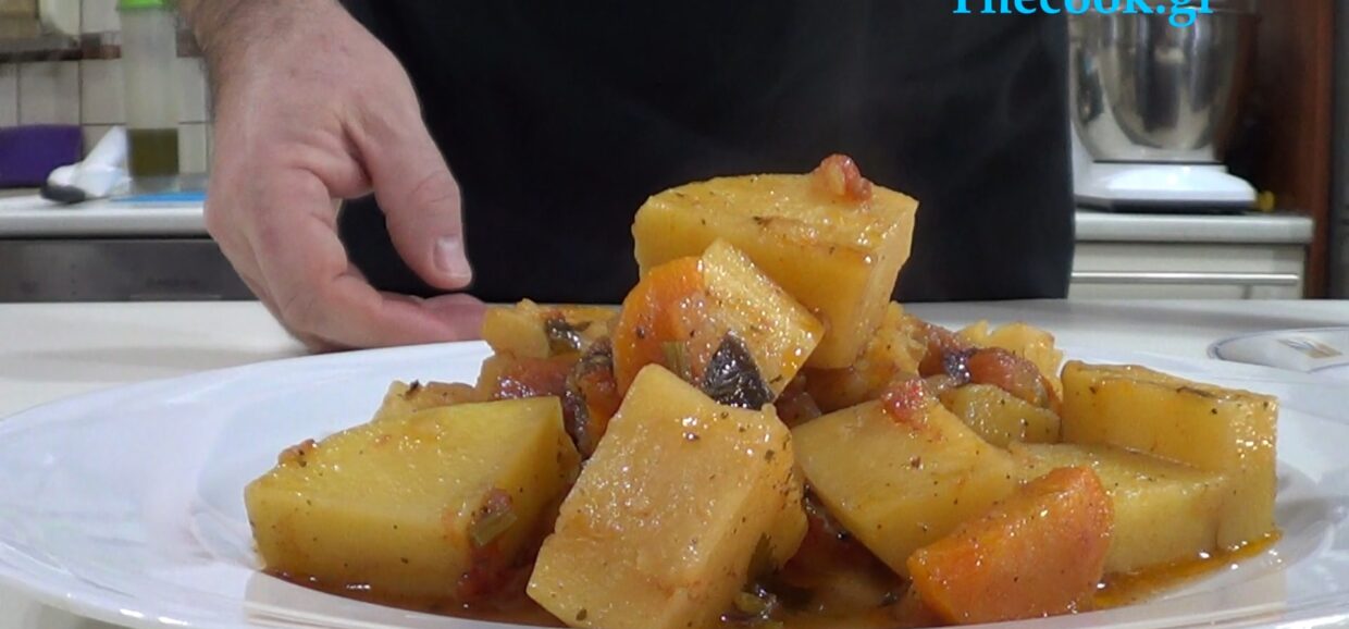 Υλικά 6 μεγάλες πατάτες 1 μεγάλο κρεμμύδι 250 γρ ντοματάκι αποφλοιωμένο 200 ml ελαιόλαδο 1 μεγάλο καρότο ½ ματσάκι μαϊντανό 250-300 ml νερό Αλάτι, πιπέρι Μοσχοκάρυδο Δυόσμο Ελάχιστο γαρίφαλο τριμμένο Εκτέλεση Καθαρίζουμε τις πατάτες το καρότο και το κρεμμύδι Ψιλοκόβουμε το κρεμμύδι και το βάζουμε στη χύτρα με το ελαιόλαδο