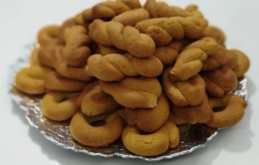 Υλικά 750 γρ. αλεύρι σκληρό κοσκινισμένο 1 ποτήρι χλιαρό νερό 1 φλιτζάνι γλυκό λευκό κρασί 0 Facebook 0 Facebook-messenger 0 Twitter 0