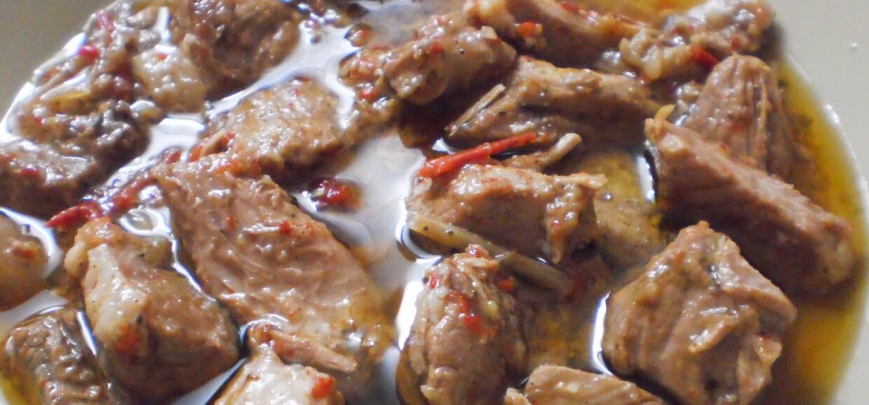 Υλικά 1 κιλό χοιρινό από σπάλα, κομμένο σε λωρίδες 3 καρότα 2 πιπεριές κόκκινες 1 πιπεριά πράσινη 200 γρ μανιτάρια 2 κρεμμύδια 2 σκελίδες σκόρδο Λίγη βετζέτα 2 φύλλα δάφνης 2 πορτοκάλια στυμμένα 3 κουταλιές αλεύρι 150 μλ κρασί Λίγο λάδι για το τσιγάρισμα Αλάτι πιπέρι Εκτέλεση Για να