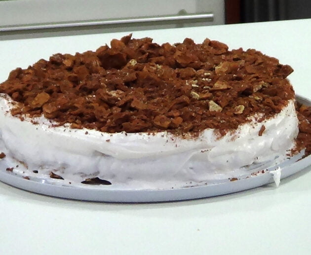 Υλικά: 400 γρ. παντεσπάνι 400 ml. σιρόπι 250 γρ. τυρί μασκαρπόνε 300 γρ. μαρμελάδα βύσσινο 0 Facebook 0 Facebook-messenger 0 Twitter 0 Linkedin 0 Viber