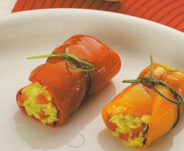 Υλικά 2 κίτρινες πιπεριές, 2 κόκκινες πιπεριές, 2 αβοκάντο. 0 Facebook 0 Facebook-messenger 0 Twitter 0 Linkedin 0 Viber 0 Whatsapp 0 Telegram 0